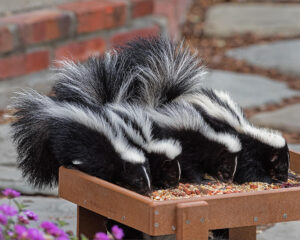 Read MoreIf cornered by a persistent attacker, the skunk will arch its back, raise its fur and stick its tail straight up into the air. This makes the skunk appear to be bigger and more ferocious.