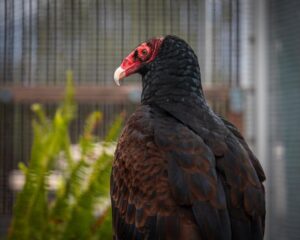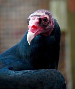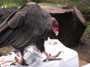 Vladimir had been found as a tiny fluffy baby and was raised by humans. Unfortunately, as he grew into an adult vulture, he was too imprinted to be released. Turkey Vultures are notoriously difficult to raise in captivity, and these social birds imprint easily. Protocols have improved since the 1980s, but WildCare still takes great care to avoid imprinting when we admit a baby vulture.