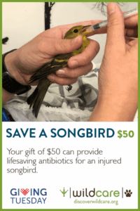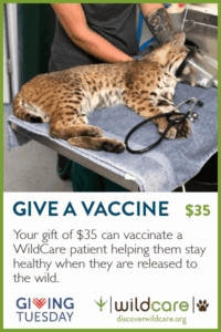 Giving Tuesday provides WildCare with the opportunity to raise important funds that allow us to continue our vital work in helping wildlife heal and educating the next generation of environmental stewards.