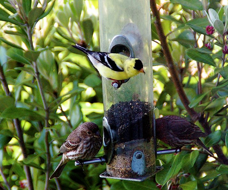 The best reason to clean feeders is to prevent the spread of sickness, just as humans clean shared cups, plates and utensils. The most common disease seen in our area is avian conjunctivitis, most frequently seen among House Finches. If you notice birds with swollen or closed eyes, take down and clean your feeders thoroughly, soaking them for a full 20 minutes in a 10% bleach solution. You should wait until you are no longer seeing afflicted birds before putting your feeders back up.