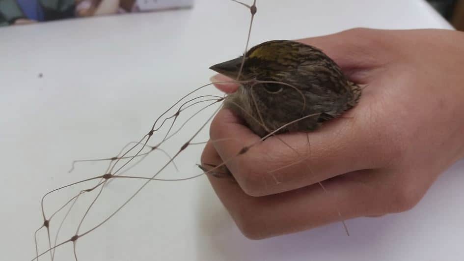 Some of the entanglements are Halloween-related, like the little Screech Owl shown here, who was caught in fake spiderweb decorations a few years ago.