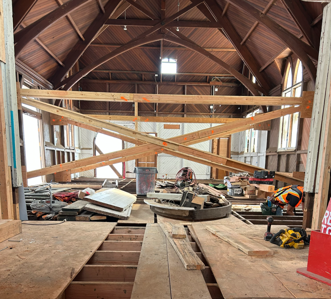 The building was built in 1879 as the parish hall for the St. Paul’s Episcopal Church in San Rafael. The Historic Design Review done for WildCare notes that “The parish hall is a rare local example of Carpenter Gothic architecture, featuring steeply pitched gables, decorative bargeboard, lancet windows, and original wood interiors.”