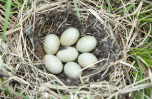 Mallard females lay pale green eggs and can have more than a dozen in a single clutch. If you come across a duck nest, please don’t disturb it and definitely don’t try to move it, even if it seems like an unfavorable place for a nest.It may be tempting to try and help mama duck by leaving some food nearby for her, but this can do more harm than good! The smell of food attracts hungry animals to an otherwise camouflaged and protected nest site. Predators and scavengers attracted by human-provided food will gladly eat the nutritious eggs.