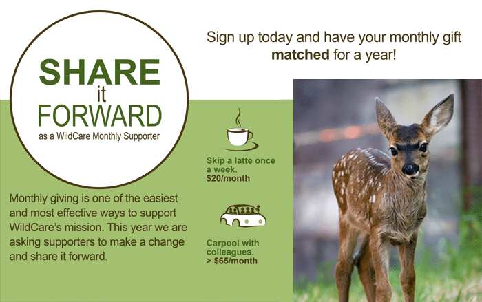 Click here to help us care for our orphaned fawns with a MATCHED monthly donation!
